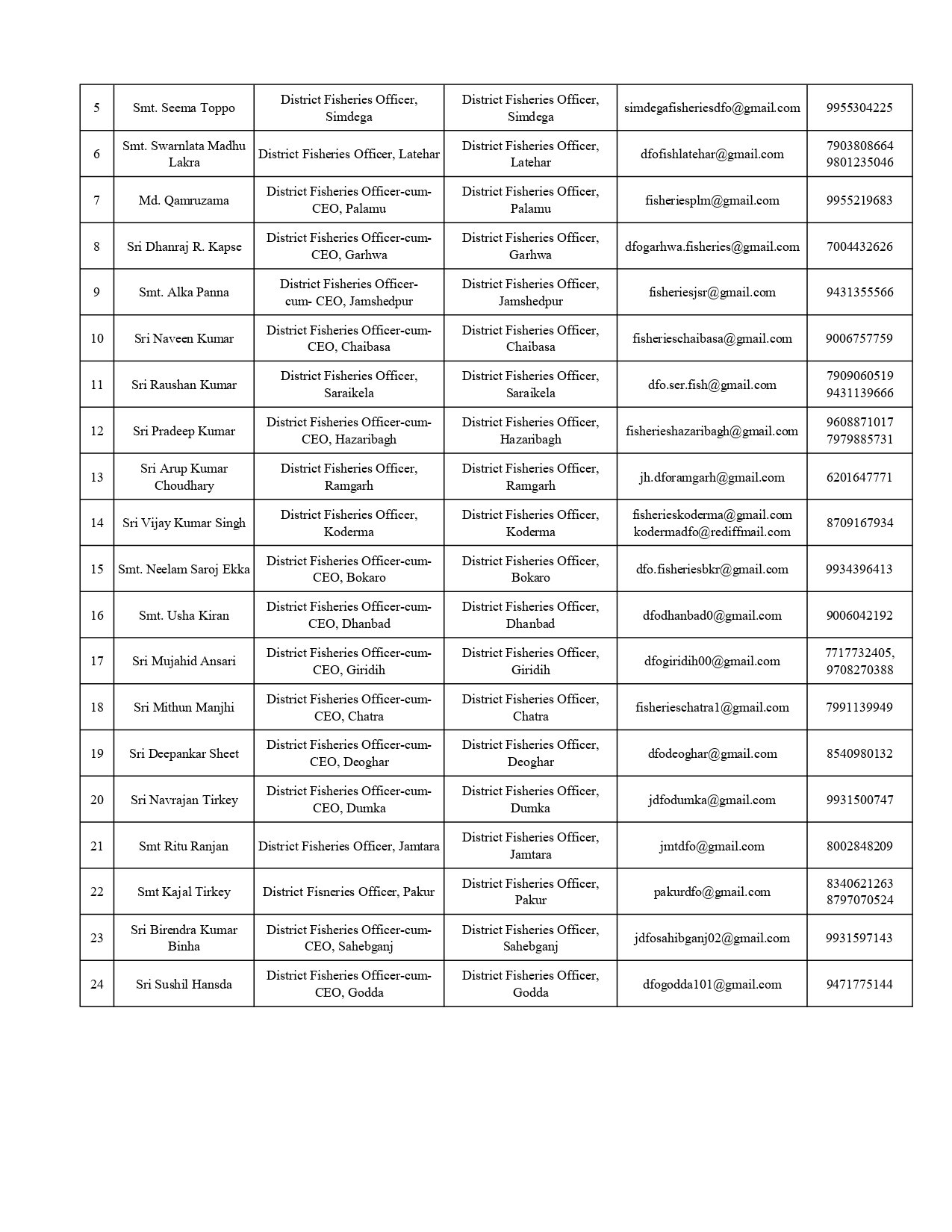 | Secretary, Agriculture, Animal Husbandry and Co-operative | 0651-2490578 |